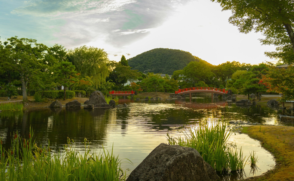 This hillside park overlooking Fukui City offers both city views and natural trails.